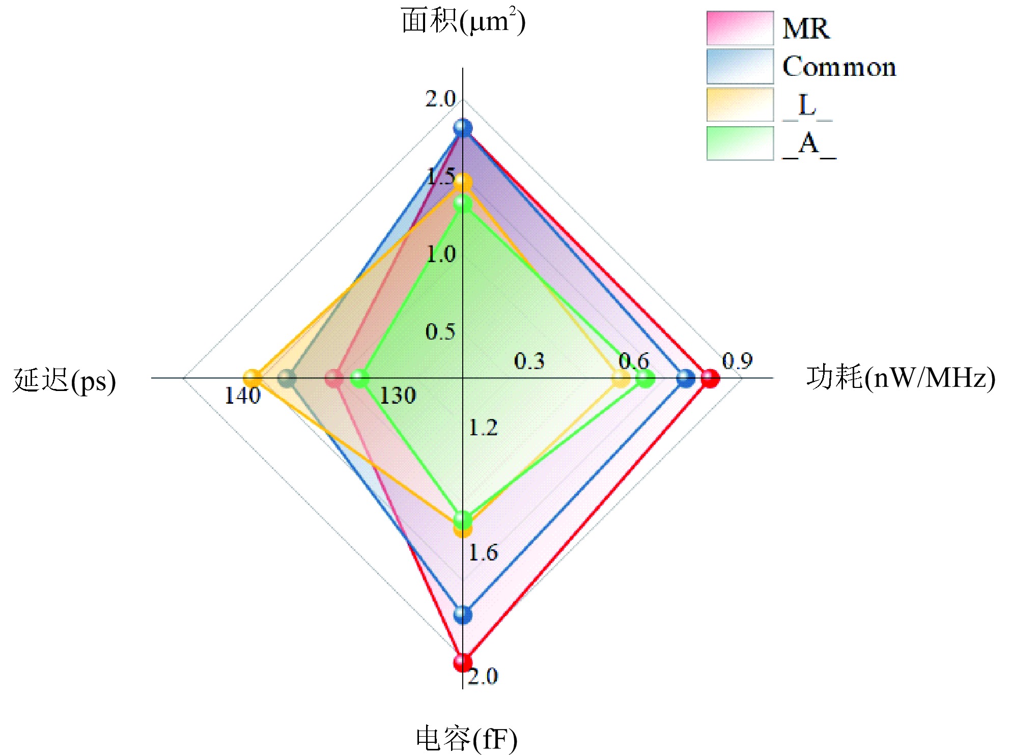 Comparison of area, capacitance, power consumption, and delay for four types of units